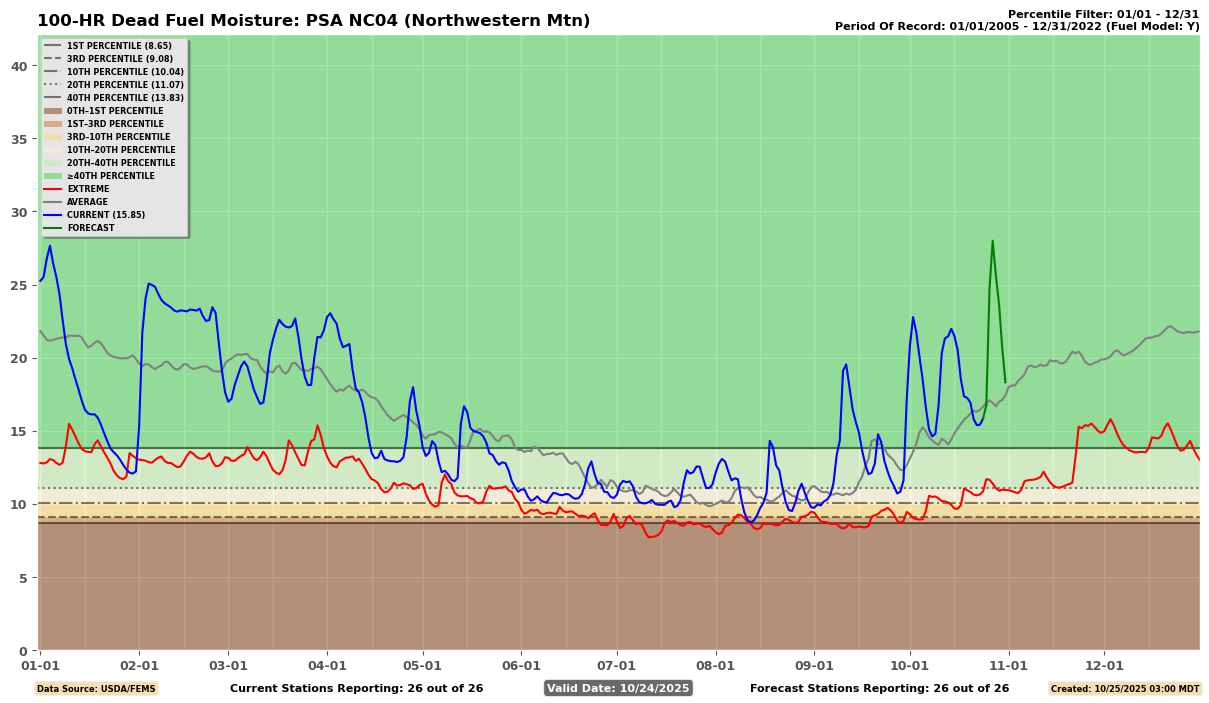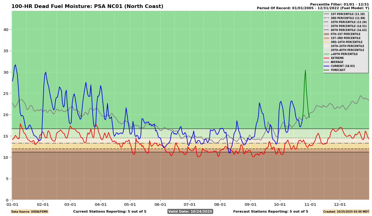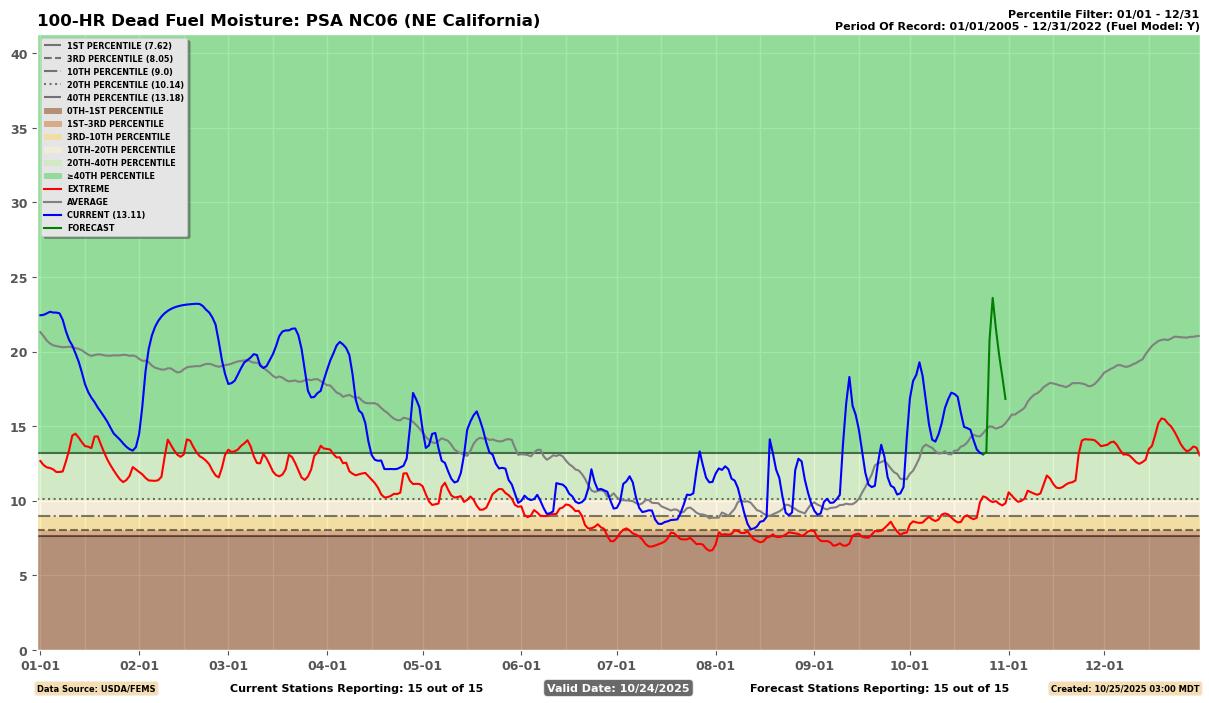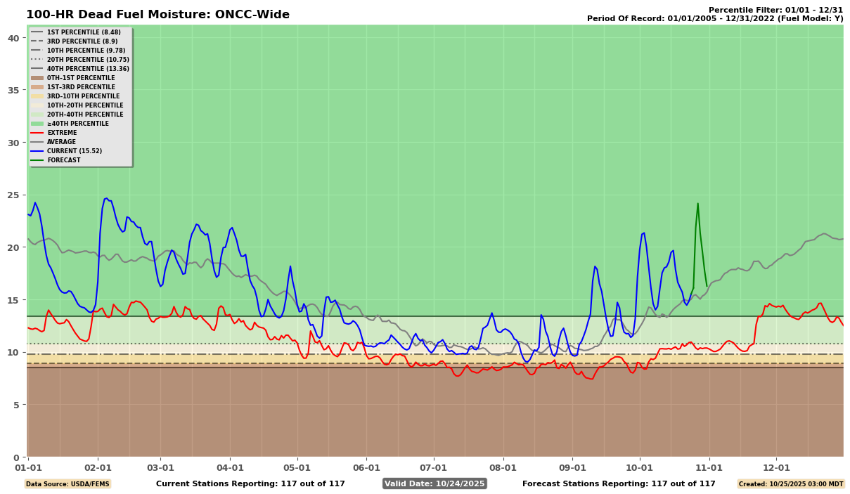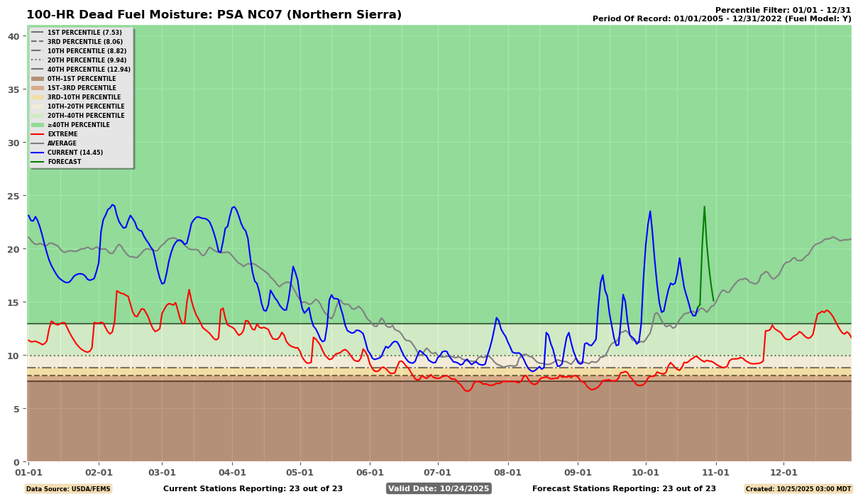 Fuels and Fire Danger, Predictive Service Area Charts - 100 Hour Fuel Moisture Full Page View