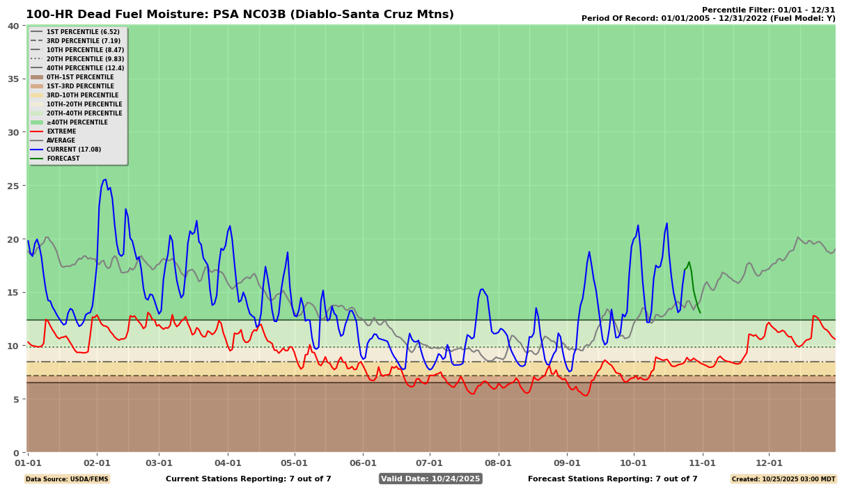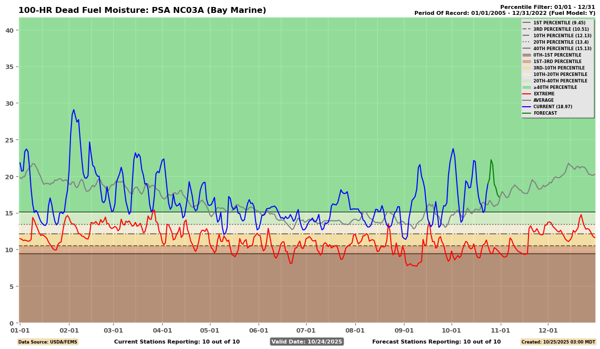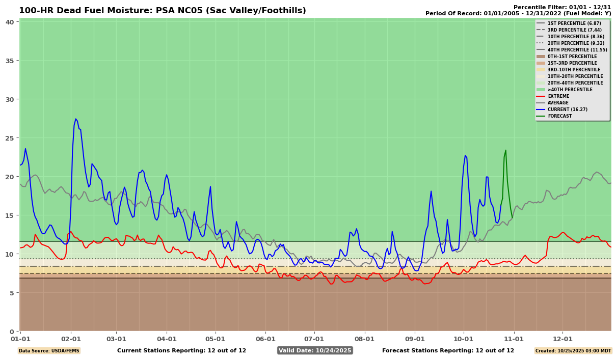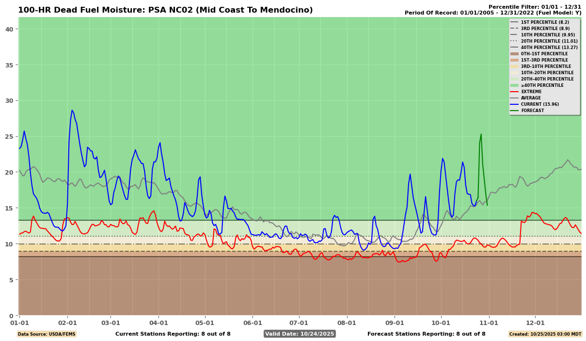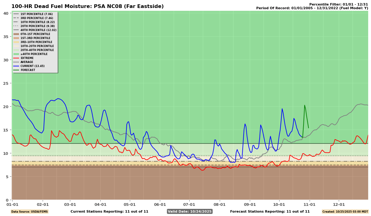Fuels and Fire Danger, Predictive Service Area Charts - 100 Hour Fuel Moisture Full Page View